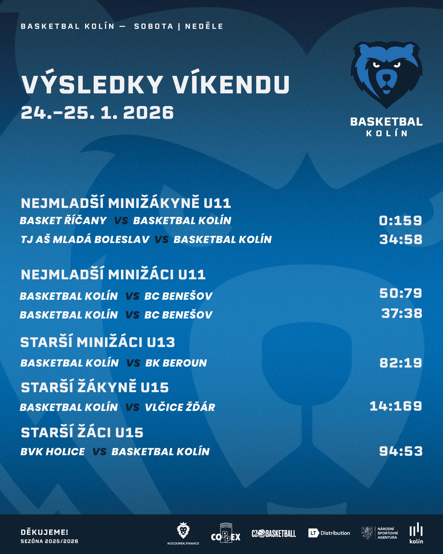 BASKETBAL KOLÍN – Vlčice Žďár 14:169