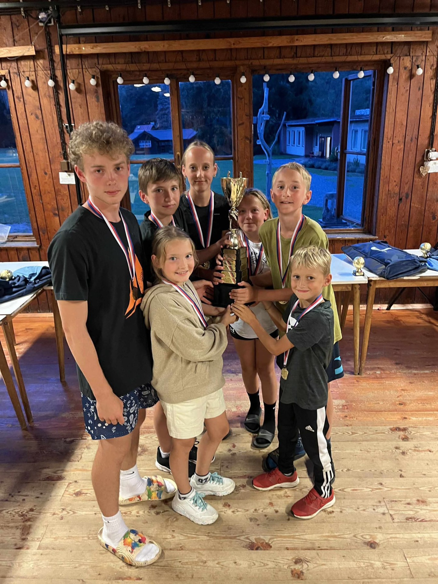 Tábor je za námi – a byl to týden, na který jen tak nezapomeneme! Plný emocí, sportování, soutěživosti, spolupráce… a hlavně pořádné dřiny! Letos jsme zažili historický moment – tři týmy se po celotýdenním klání dostaly na shodný počet bodů (62) a musel rozhodnout napínavý rozstřel ve dvojtaktech a trestných hodech.