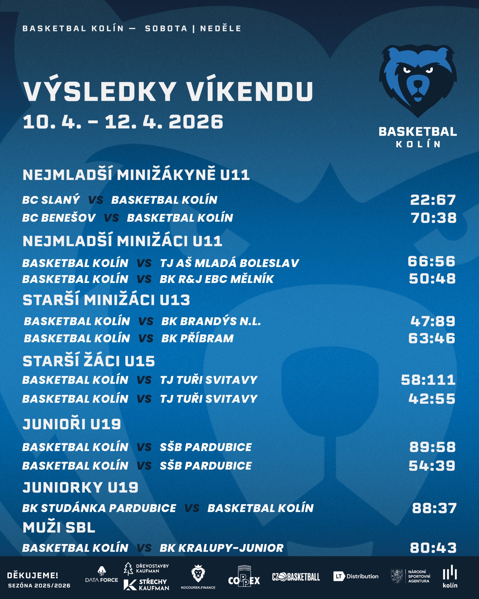 BASKETBAL KOLÍN – BK Kralupy-Junior 80:43