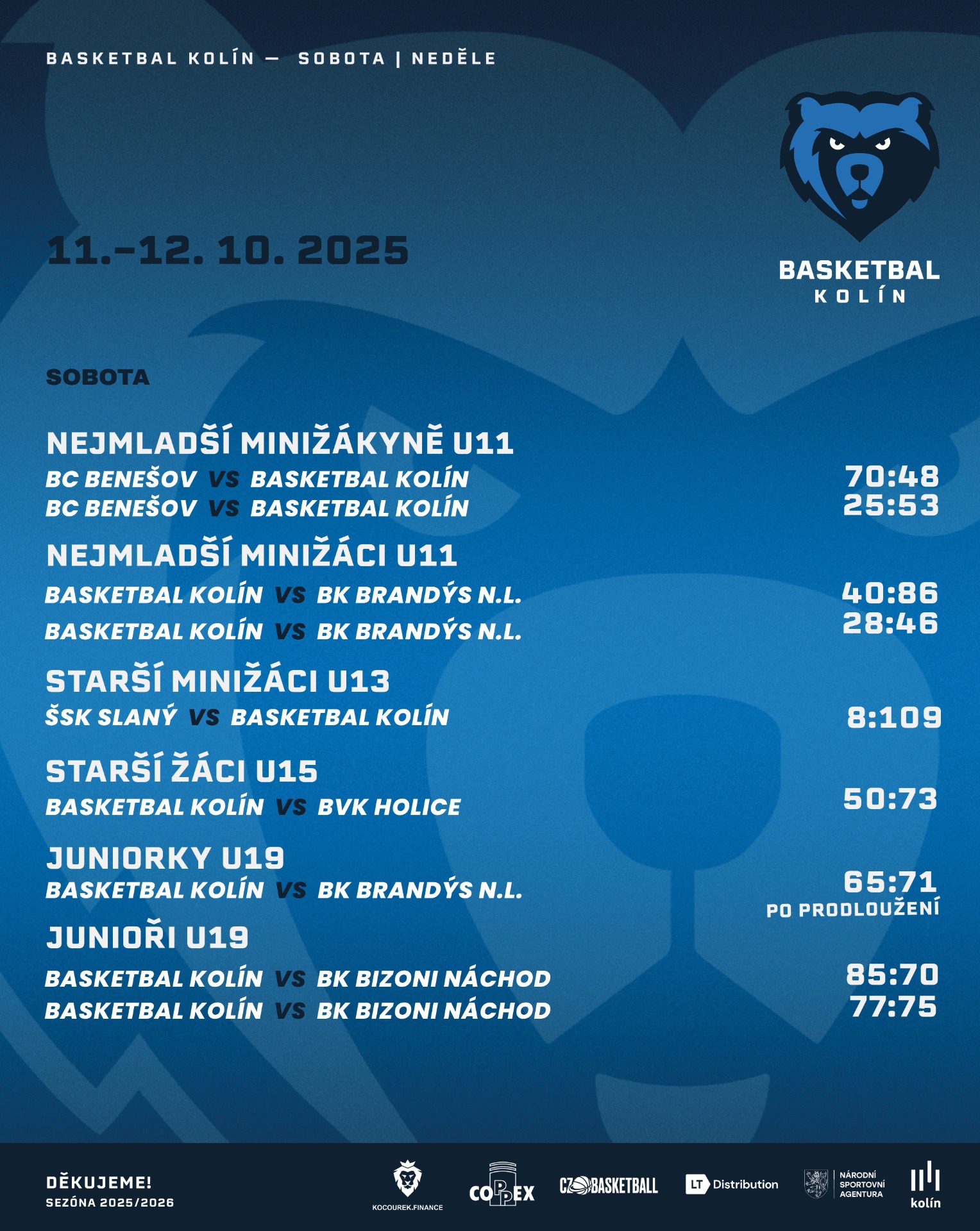 VÝSLEDKOVÝ SERVIS 11.-12. ŘÍJNA 2025