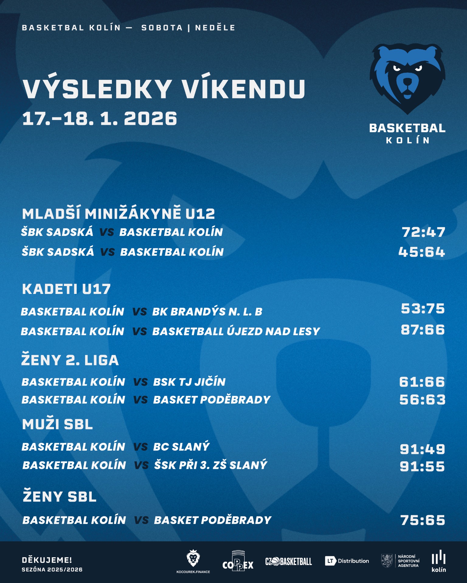 BASKETBAL KOLÍN – Basketball Újezd nad Lesy 87:66