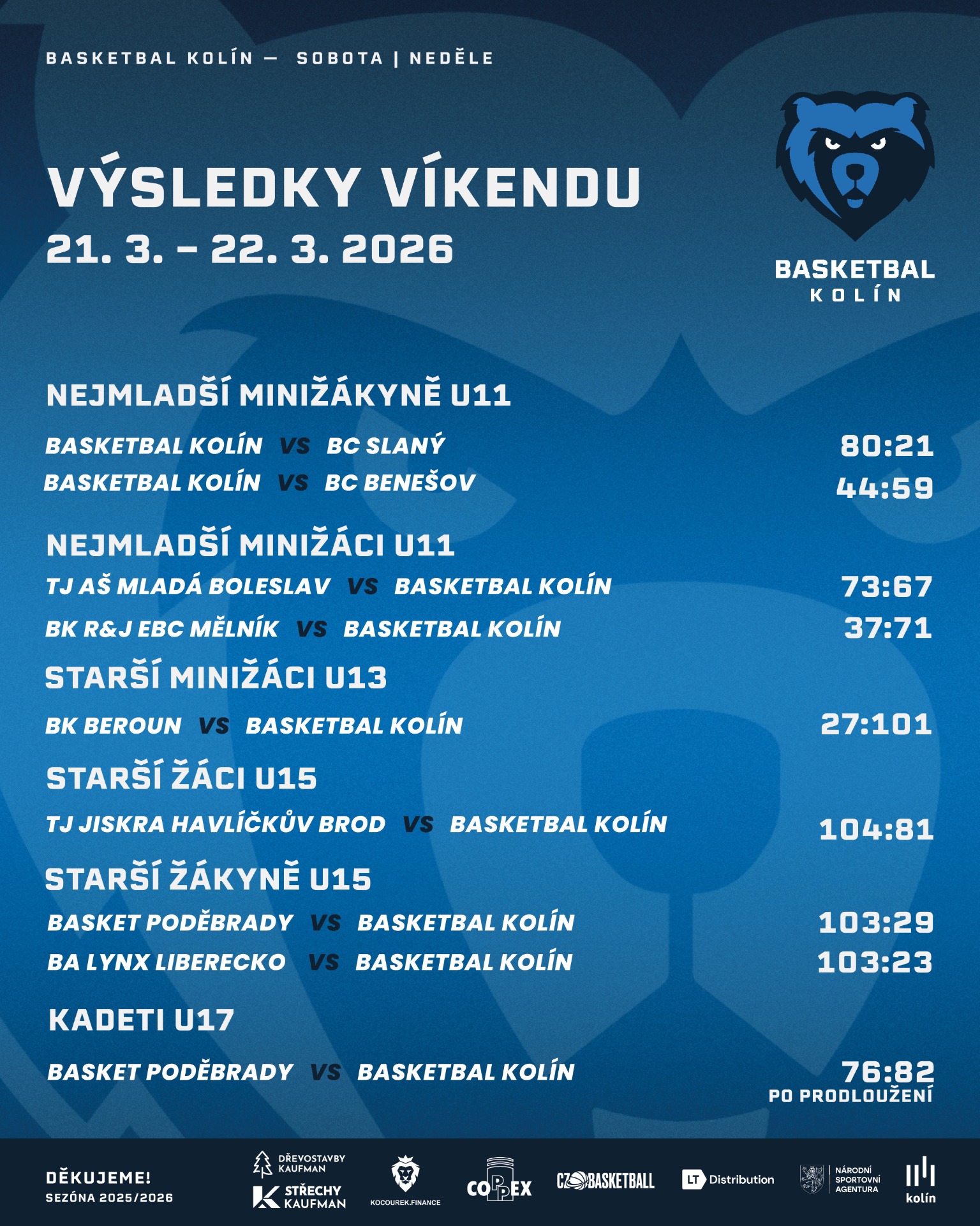 Basket Poděbrady - BASKETBAL KOLÍN 103:29